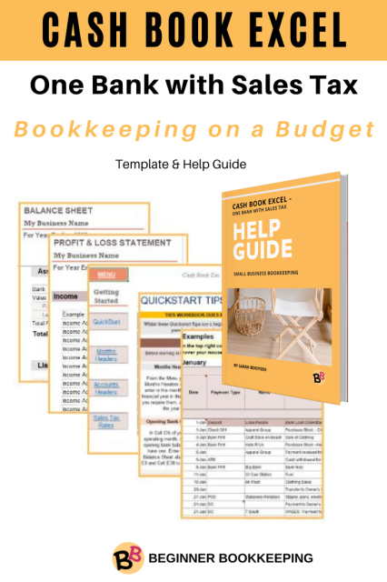 Cashbook Excel 1Bank with Sales Tax Plus Help Guide